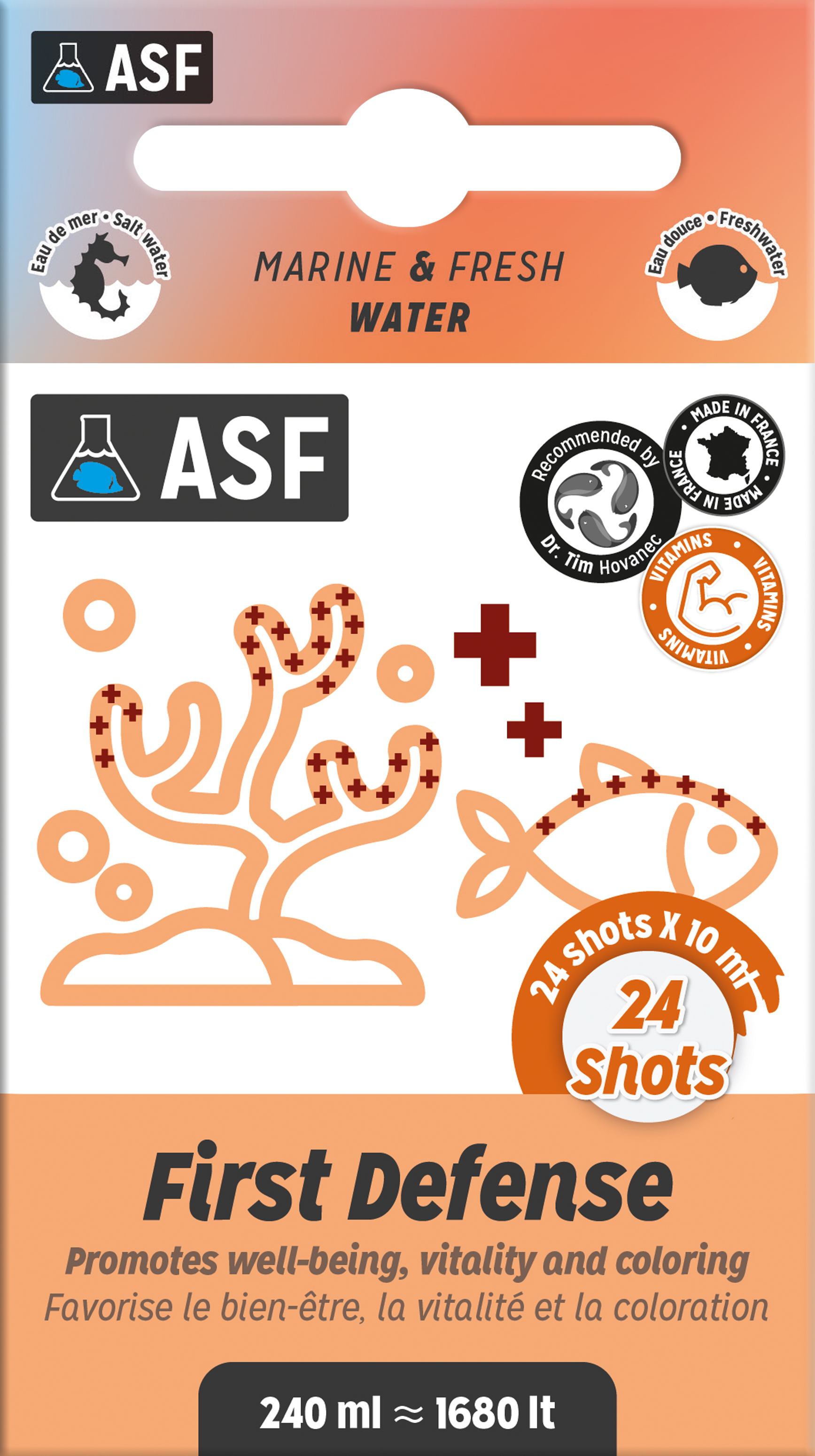 First Defense ist ein Stressreduzierer für Fische, der entwickelt wurde, um die Tiere in sensiblen Situationen im Meerwasseraquarium zu schützen. Es neutralisiert schnell das schädliche Chlor sowie die Schwermetalle, die bei Wasserwechseln vorhanden sind. First Defense trägt auch dazu bei, den Stress der Fische erheblich zu reduzieren, wenn neue Bewohner eingeführt oder Änderungen an der Dekoration vorgenommen werden. Seine Formulierung enthält Vitamine und Immunstimulanzien, die den Appetit, die Heilung und die Regeneration von Wunden fördern.