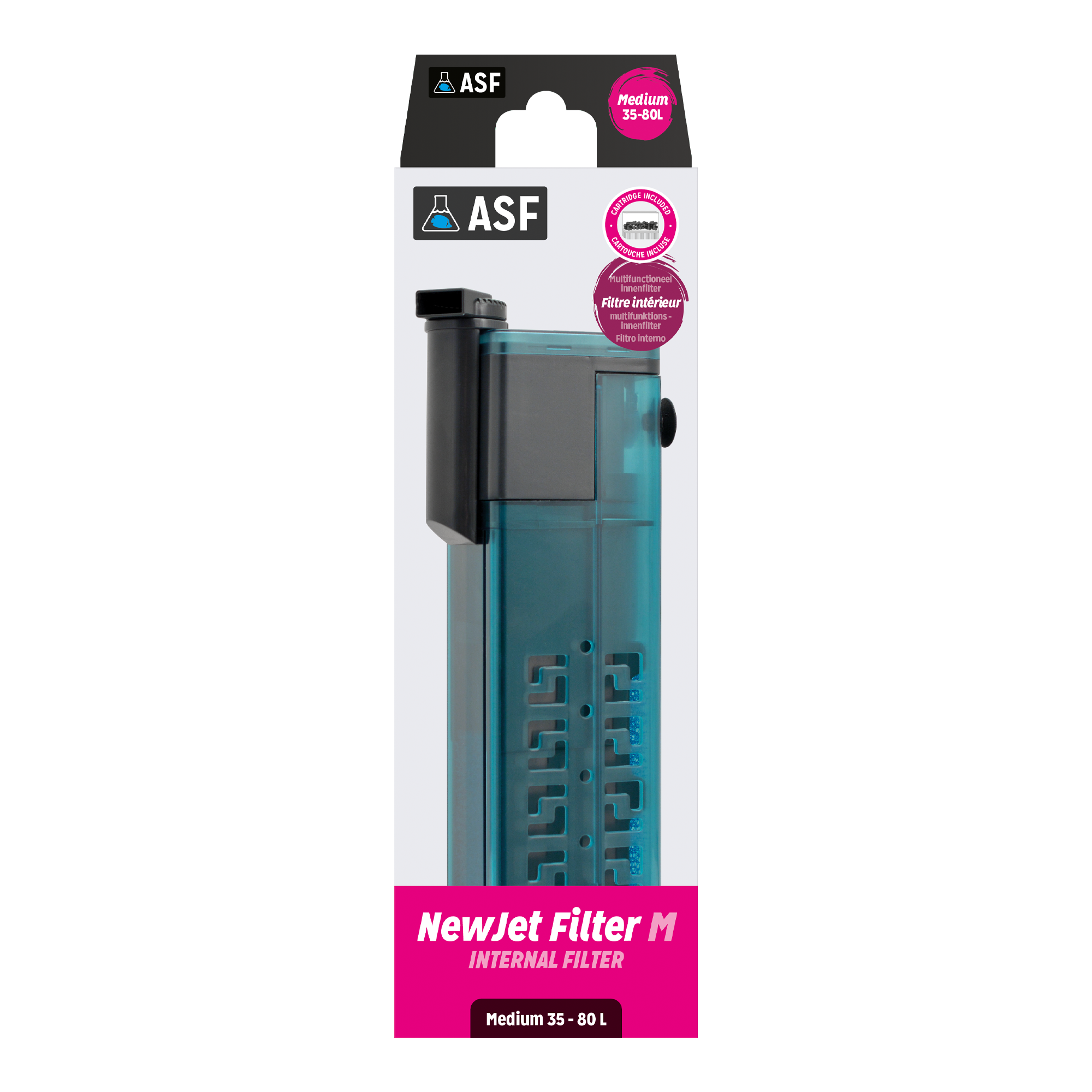Der ASF NewJet Filter ist mit drei Filterstufen ausgestattet: einer mechanischen, einer biologischen und einer chemischen Filterstufe. Der Wasserauslass ist um 360° schwenkbar. Der Filter kann senkrecht oder waagerecht mit einem Mindestwasserpegel von 3cm eingesetzt werden. Der Durchfluss ist einstellbar. Der NewJet Filter ist bedienerfreundlich und wird mit allen Zubehörteilen geliefert.
