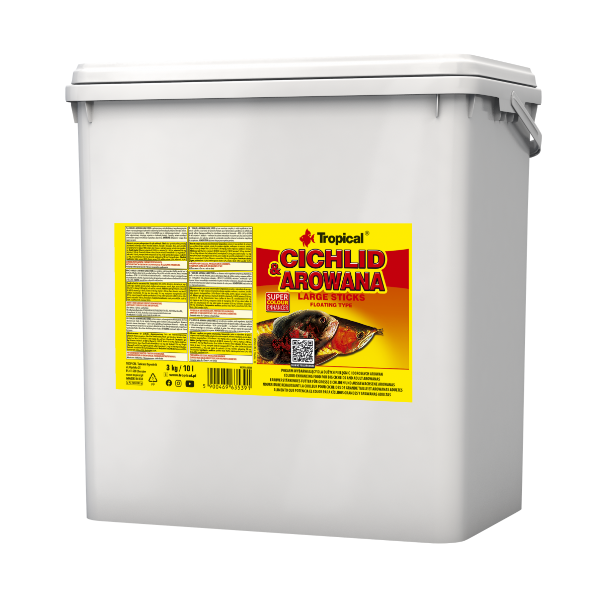 CICHLID & AROWANA LARGE STICKS sind zutatenreiche, farbverstärkende schwimmende Futtersticks (ca. 1,4cm) für große Cichliden, ausgewachsene Arowana und große alles- und fleischfressende Fische.