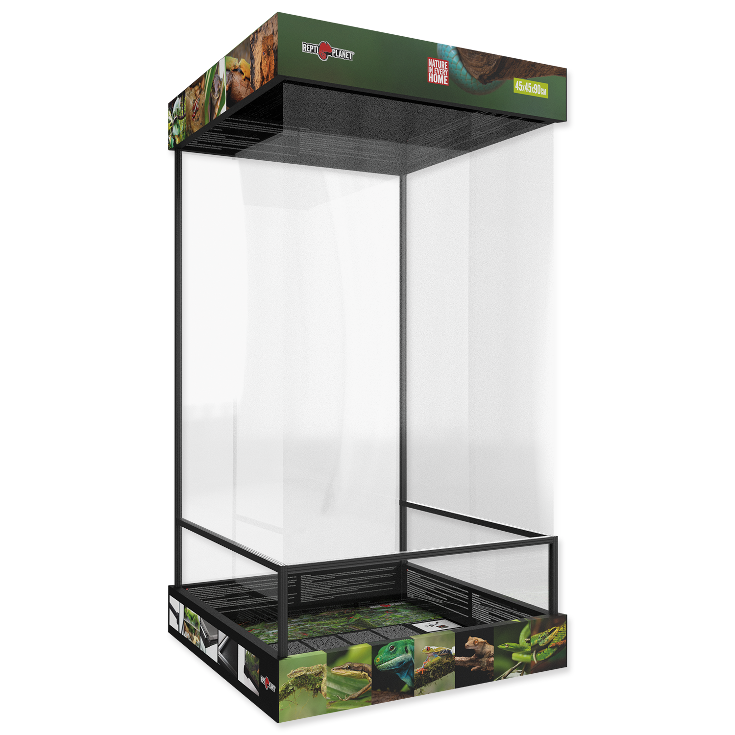 Die Glas Terrarien von Reptiplanet sind eine kompakte und stilvolle Lösung, die speziell für Reptilien und Amphibien entwickelt wurde. Sie bestehen aus hochwertigem, transparentem Glas, das eine klare Sicht auf das Innere ermöglicht und gleichzeitig eine stabile und langlebige Umgebung bietet. Die Terrarien sind mit sicheren Türen vorne ausgestattet, um den Zugang zu erleichtern. Sie verfügen über einen Deckel mit einem Metallgitter, um eine gute Luftzirkulation zu gewährleisten. Dieser kann bei Bedarf entfernt werden, was das Reinigen und Füttern der Tiere vereinfacht. Der Rahmen oben und unten ist aus Kunststoff, was das Stapeln der Terrarien möglich macht. Die Verwendung von Heizmatten auf dem äußeren Glasbereichen ist möglich.