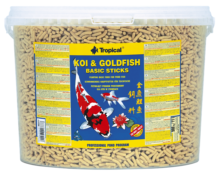 Koi & Goldfish Basic Sticks ist ein schwimmendes Hauptfutter in Form von Sticks (ca. 1cm) für Koi, Goldfische und alle anderen Zier-Cypriniden, die im Gartenteich gehalten werden. Dank ihrer speziellen Struktur sinken die Sticks nicht zu Boden. Sie sind für die Fische ein in Bezug auf den Nährwert artgerechtes Futter, das ihren Energiebedarf völlig deckt und die erforderliche Menge an Fasern enthält, um einen gesunden Verdauungsprozess sicherzustellen.