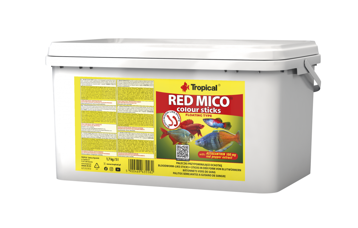 RED MICO COLOUR STICKS ist ein extrudiertes Futter in Form von Blutwürmern für die tägliche Fütterung alles- und fleischfressender Fische, die in Süß-, Meer- und Brackwasser leben.