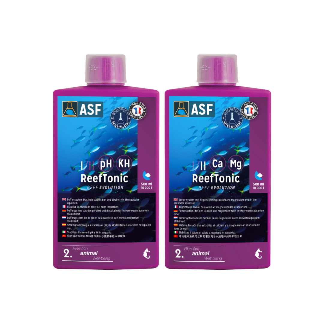 ReefTonic I & II ist ein Puffer-System, das den pH-Wert und die Alkalinität im Aquarium gemäß den natürlichen Bedingungen stabilisiert. ReefTonic sorgt auch zuverlässig für das Gleichgewicht zwischen dem Kohlendioxid, das durch den Stoffwechselprozess der Tiere und Pflanzen abgebaut wird.
