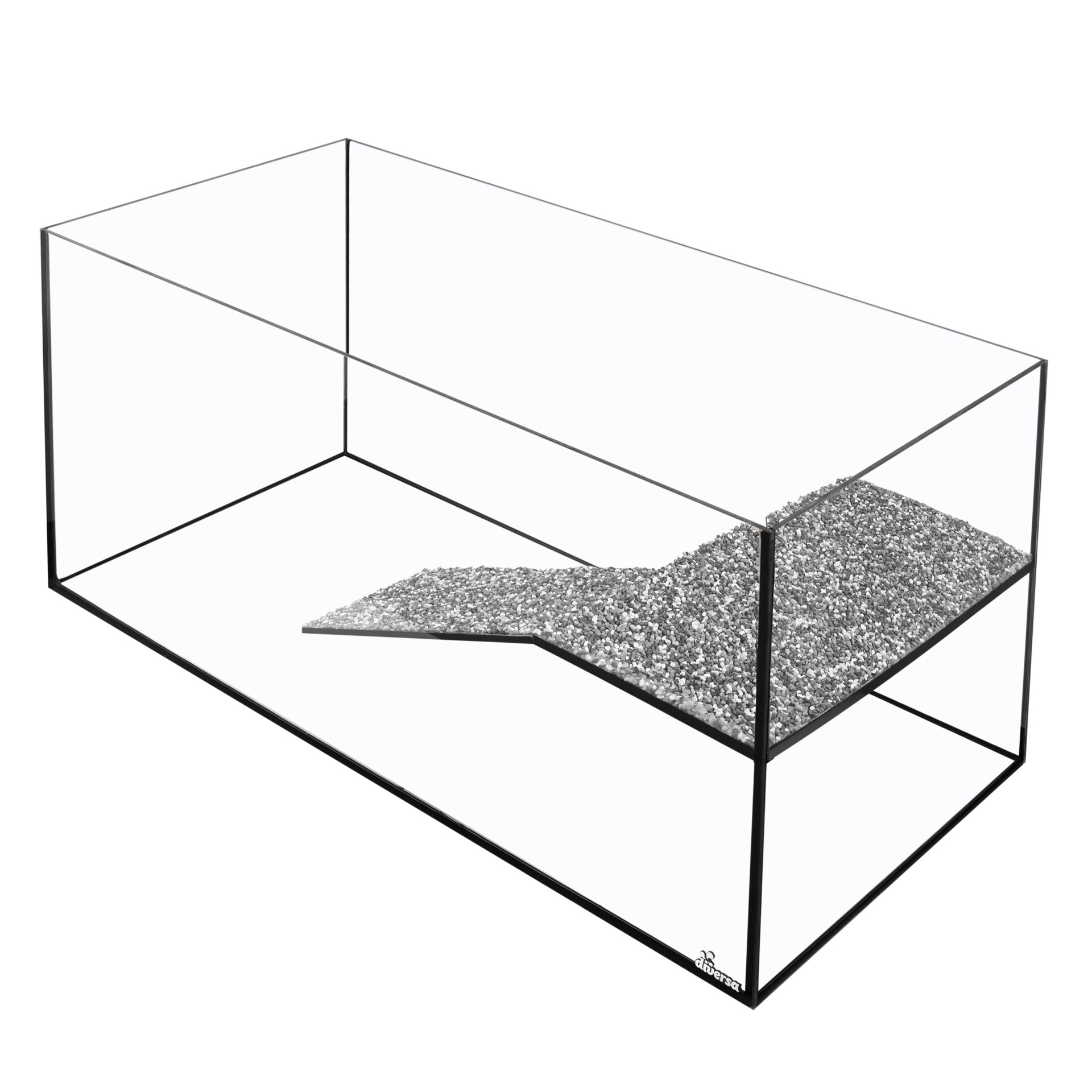 Die Insel, die integraler Bestandteil der Struktur ist, besteht aus Float-Glas und ist fest im Tank installiert. Die Oberfläche ist mit einem Kies bedeckt, der einen stabilen, rutschfesten Platz für Ruhe, Sonnen und vollständige Körpertrocknung schafft – was entscheidend für die Gesundheit der Tiere ist.