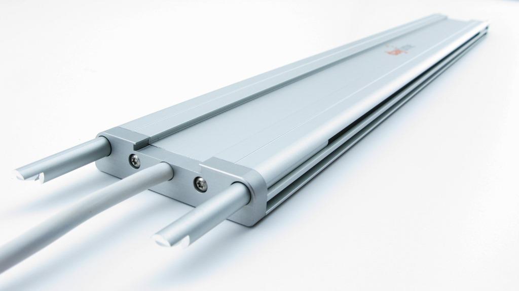 Inline-Adapter-System - Zum Lieferumfang jedes matrix-Profils gehört das Universal-Adapter-Set. Vier innenliegende ausziehbare Teleskop-Auflagestäbe können einzeln auf die Aquariumgröße justiert und fixiert werden.