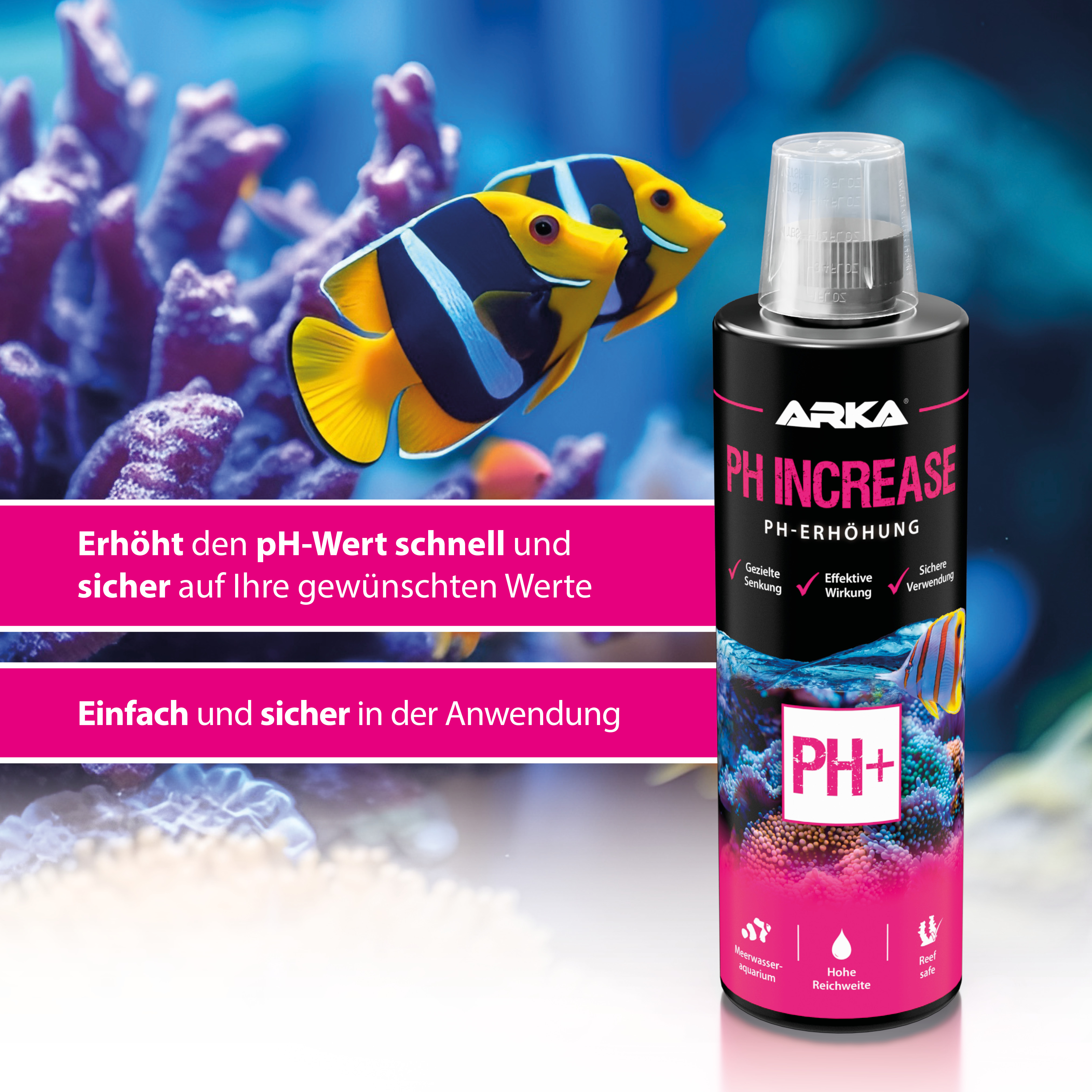 pH Increase ist ein speziell entwickeltes Produkt zur gezielten Anhebung des pH-Wertes für alle Meerwasseraquarien. pH Increase erhöht den pH-Wert schnell und sicher auf Ihre gewünschten Werte. Die zusätzlich im Produkt eingebrachten Elektrolyte verhindern einen osmotischen Schock bei Ihren Tieren und schützen zugleich die Schleimhaut und Kiemen Ihrer Fische.