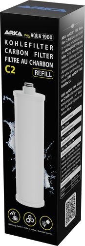 myAQUA 1900 KOHLEFILTER C1 Für myAQUA 1900 Umkehrosmoseanlage Der myAQUA Kohlefilter C1 entfernt sicher und effektiv Gerüche, Verfärbungen, Chlor, Herbizide, Pestizide sowie Medikamentenrückstände und eignet sich optimal zur Verwendung für die ARKA myAQUA 1900 Umkehrosmoseanlage. Er enthält einen Block aus hochwertiger Aktivkohle, für optimale Ergebnisse und sauberes Wasser. Betriebstemperatur: min. 5°C – max. 38°C Betriebsdruck: min. 1 Bar – max. 4 Bar Abmessungen: ca. 27,5x8cm (LxB)Durchflussleistung: max. 2 l/min Kohlefilter C1 Refill Wechselintervall: 6 – 12 Monate Abmessungen: ca. 24,5x6,5cm Für Süßwasser- und Meerwasseraquarien. Anleitung Anleitung Meerwasseraquarium Anleitung Süßwasseraquarium Herstellerangaben:ARKA Biotechnologie GmbHMühllach 53-5590552 Röthenbach a.d. PegnitzTel: +49 (0)911 - 56 98 610 - 00Fax: +49 (0)911 - 56 98 610 - 29 Mail: info@arka-biotech.deVertreten durch:Oliver Schultheiß