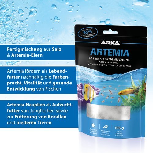 Artemia fördern als Lebendfutter nachhaltig die Farbenpracht, Vitalität und gesunde Entwicklung von Fischen in jedem Meerwasser- und Süßwasseraquarium. Artemia-Nauplien eignen sich zudem perfekt als Aufzuchtfutter von Jungfischen sowie zur Fütterung von Korallen und niederen Tieren.