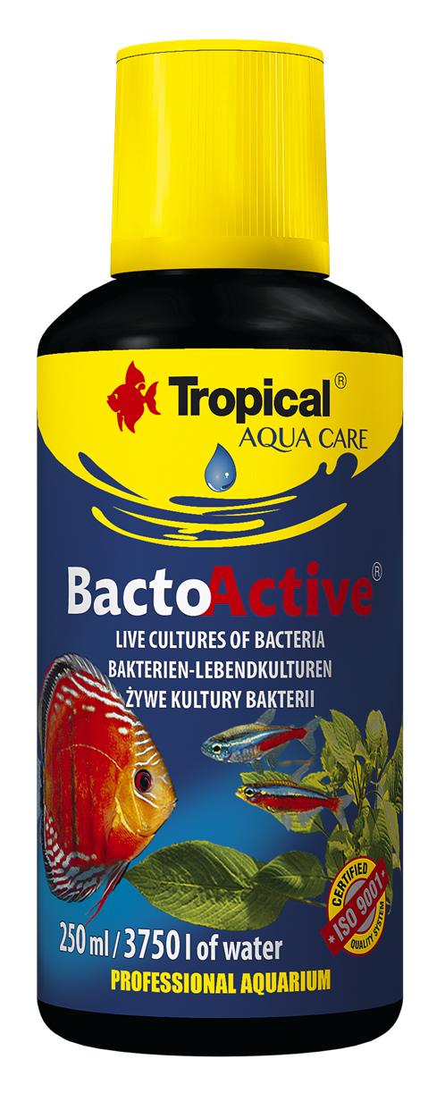 Das Mittel enthält ausgesuchte Lebendkulturen biologisch aktiver Bakterien, die im Substrat und den Filtern abgelagerte organische Materie abbauen und den Stickstoffkreislauf in Gang setzen. Die Ammoniak-Ionen, die in diesem Prozess freigesetzt werden, beschleunigen die Reifung des Aquariums, indem sie die Entwicklung der nitrifizierenden Bakterien stimulieren. Wir empfhelen BACTO-ACTIV für neue Aquarien mit behandeltem Wasser, eingefahrene Aquarien nach dem Wasser- oder Filterwechsel oder nach einer medizinischen Behandlung der Fische. Bei regelmäßiger Anwendung beschleunigt es die Zersetzung organischer Materie, beseitigt Wassertrübung und unangenehme Gerüche.
