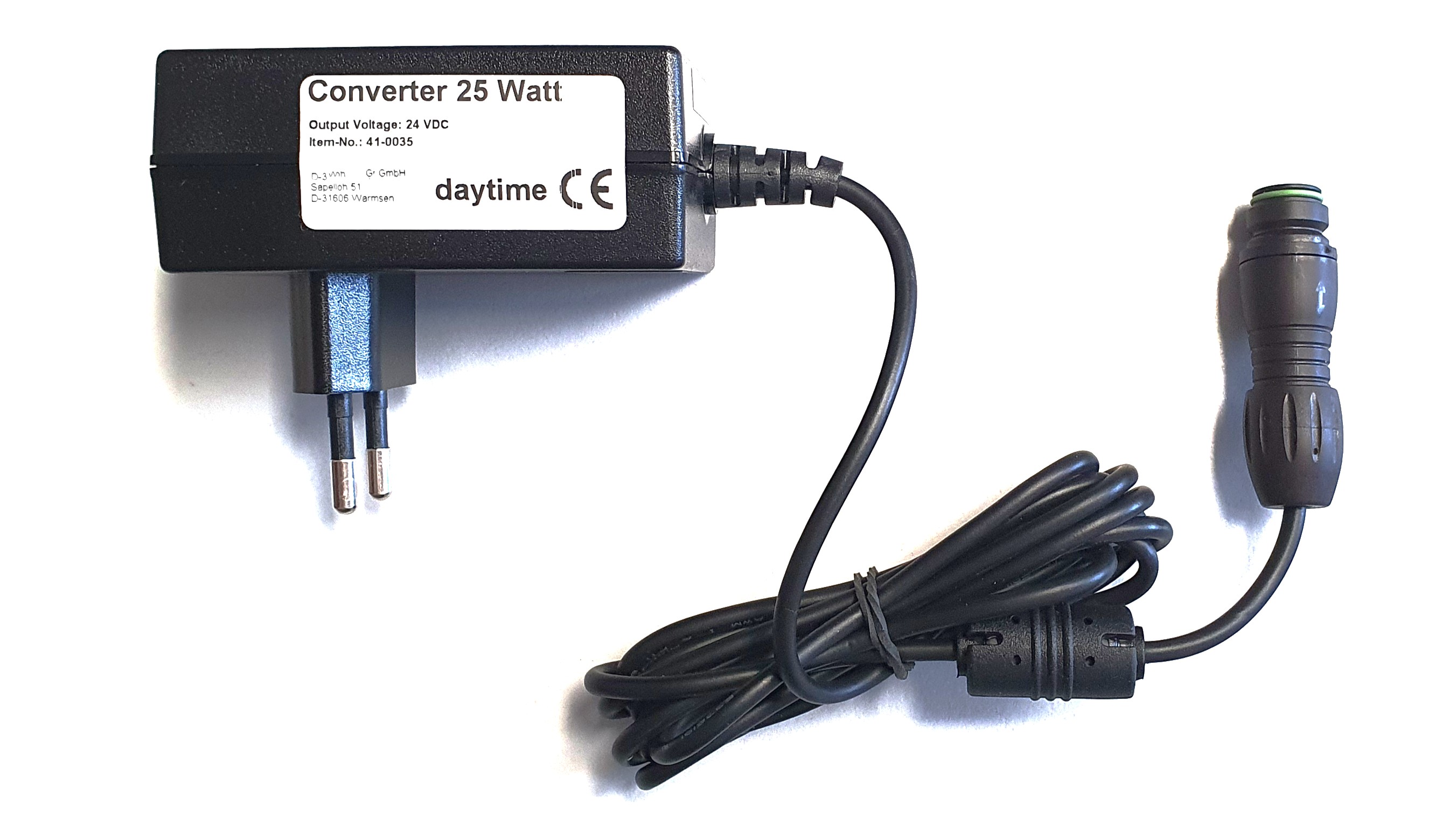 Um ein daytime® onex, matrix oder pendix LED-System in Betrieb nehmen zu können wird ein LED-Converter benötigt, er ist der Motor der Beleuchtung. Für die daytime® LED-Leuchten sind verschiedene Leistungsstufen zwischen 25 und 240 Watt erhältlich. Mit separat erhältlichen Verteilern können 2 bis 4 LED-Leuchten gleichzeitig mit einem Converter versorgt werden. Dabei ist stets darauf zu achten, dass die Gesamtleistung der Leuchten die Nennleistung des verwendeten Converters nicht überschreitet. Die maximal zulässige Leistung beträgt 240 Watt (unabhängig von der Anzahl der belegten Plätze). Converter, Verteiler und LED-Leuchte sind über ein Stecksystem sicher und werkzeuglos zu verbinden (Plug & Play – PnP). Unsere Converter sind Schutz-Kleinspannungs-Netzteile gemäß DIN 61347-2 zum Betrieb der daytime® LED-Systeme.