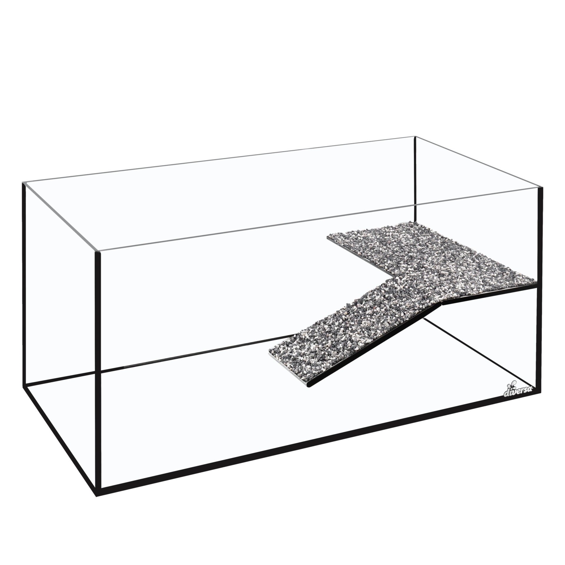 Das Aquarium mit der Insel ist eine funktionale und ästhetische Lösung, die auf die Bedürfnisse von Wasser- und Landtieren – wie Schildkröten – ausgelegt ist. Hergestellt aus hochwertigem Glas, ausgestattet mit einer langlebigen, eingebauten Insel, ist es eine fertige Basis für die Schaffung einer komfortablen und sicheren Wohnumgebung.