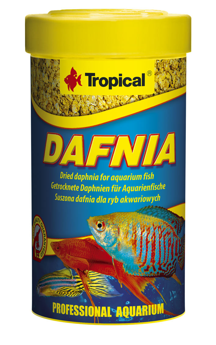 DAFNIA ist ein natürliches Futter in Form von getrockneten Wasserflöhen (Daphnia) für die tägliche Fütterung von kleinen Aquarienfischen.