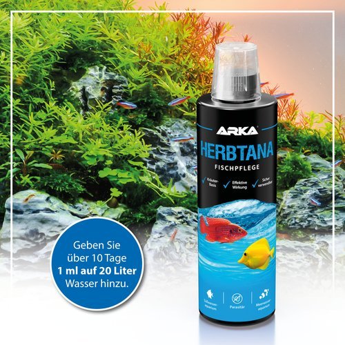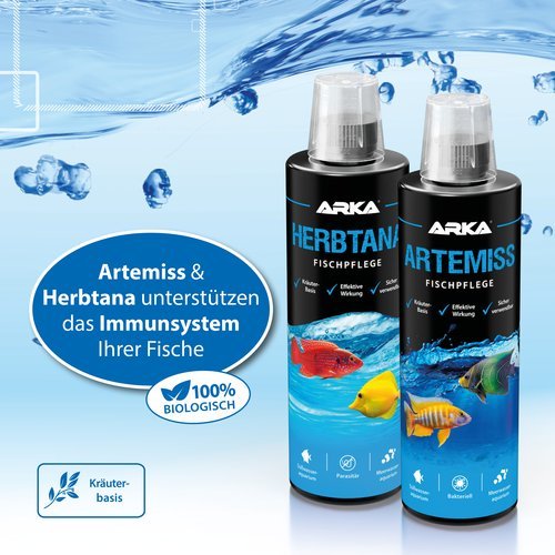 Verwenden Sie beim Einsetzen von neuen Fischen Artemiss und Herbtana im Abstand von 12 Stunden für 1–2 Tage, bis die Fische stabil schwimmen.