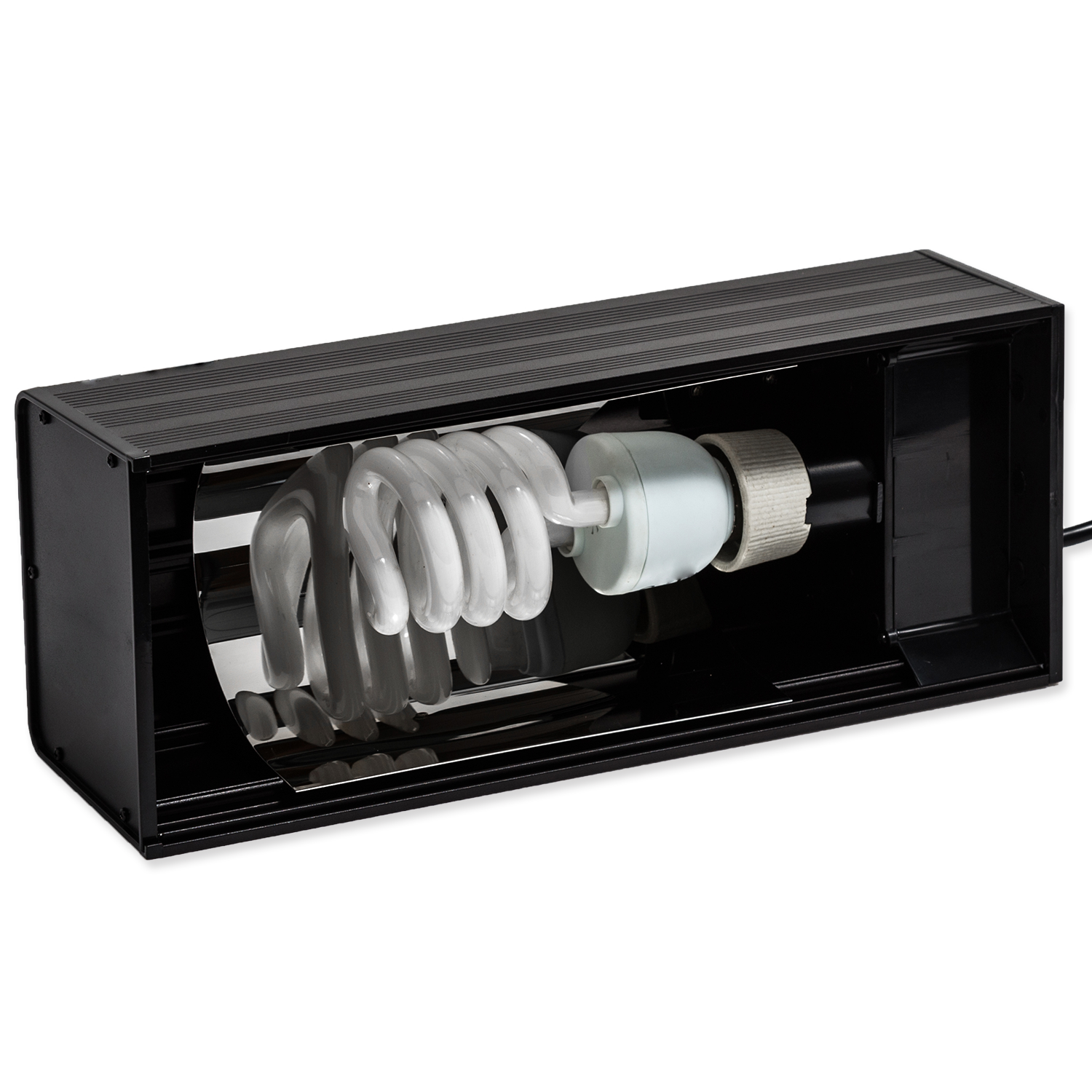 Die Lampenfassung Compact Hood von ReptiPlanet ist für Strahler bis 26W geeignet. Der hochglanzpolierte Aluminiumreflektor fördert die Wärme- und Lichtkonzentration und erhöht die Intensität der UVB- und UVA-Strahlung im Terrarium. Die Abmessungen der Lampenfassung ermöglichen die Montage direkt auf der Terrarien-Gitter-Abdeckung. Sie ist ideal für den Einsatz bei den ReptiPlanet Medium und Large Terrarien.